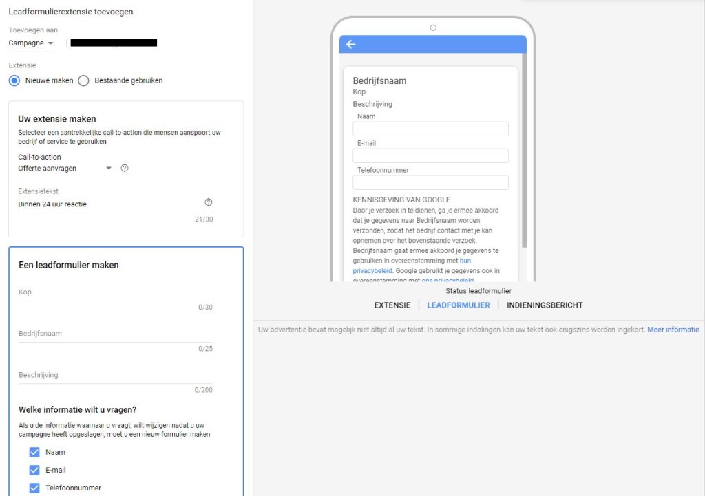 Voor meer informatie over leadformulier extensie kun je op de pagina van Google kijken.